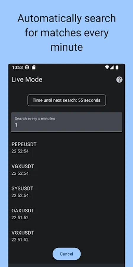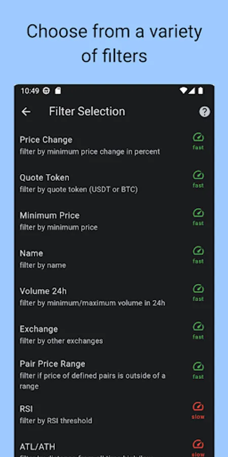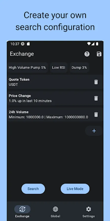 The app allows you to check the markets every minute and get an alert when any token matches your criteria. This app is meant to help you to be early to trending cryptocurrencies without having to stare at charts all day!