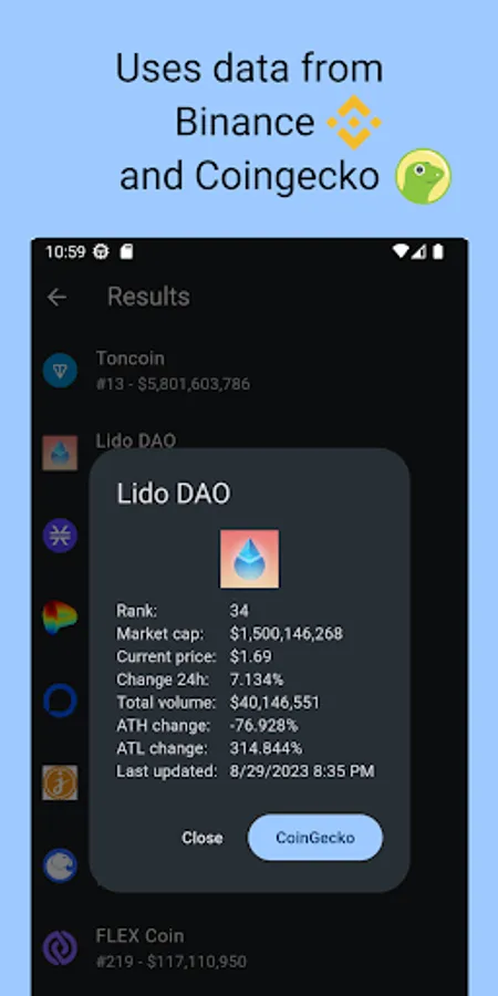 Besides centralized exchanges we also use data from Coingecko. This allows you to check data for crypto coins that are only available on decentralized exchanges such as Uniswap.
