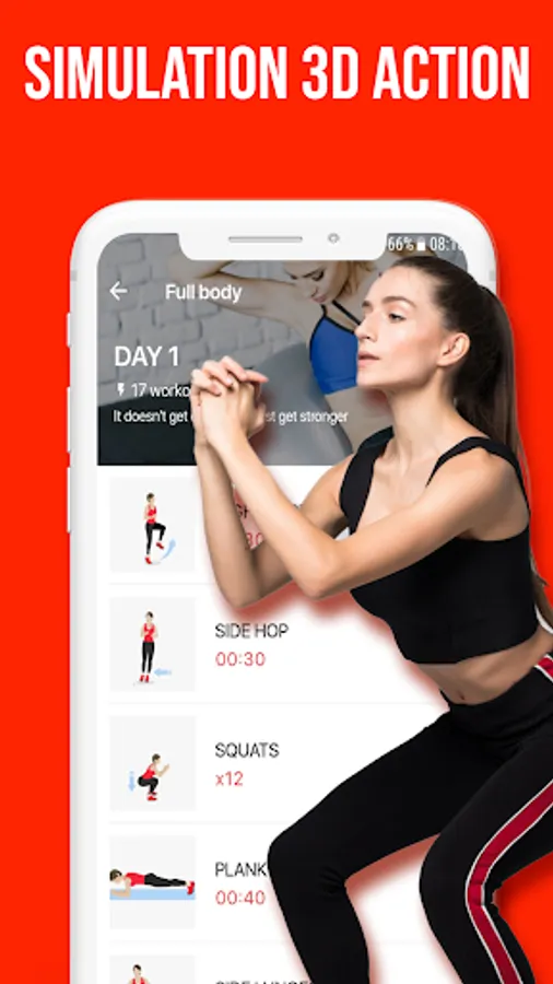 The application has 3 levels of difficulty, from basic to professional. Find yourself the right exercise for you. You don't need to go to the gym, just spend a few minutes every day to get the perfect body!