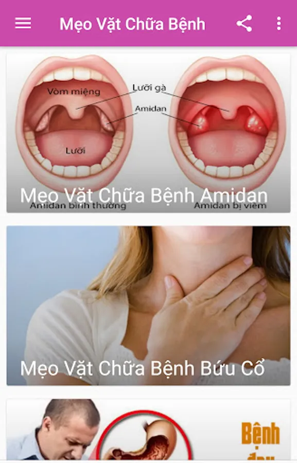 The application includes articles guiding the treatment of the following diseases: