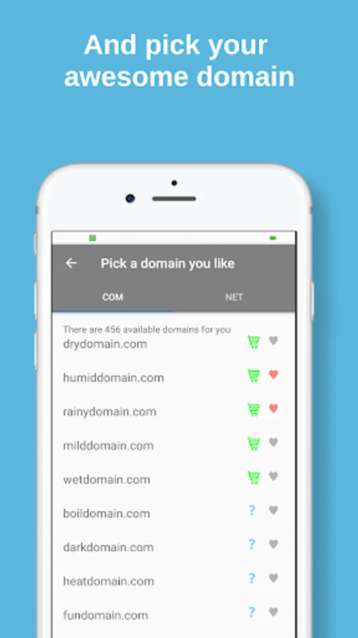 3. Choose a domain name that you like best from many available suggested one. The app will try to do whois lookup to ensure the domain suggestions for you are available