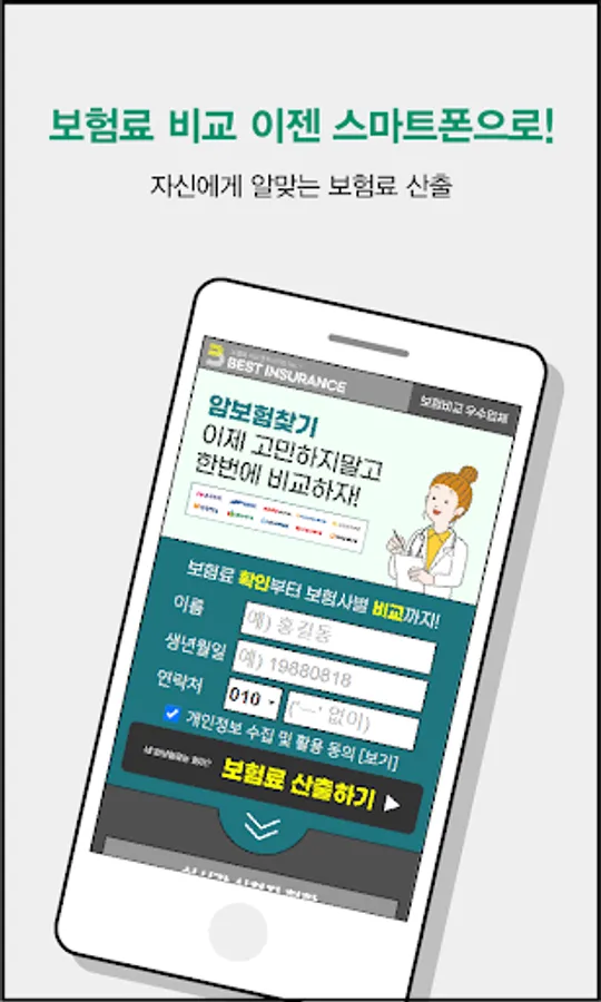 Compare and inquire insurance premiums for cancer insurance from major insurance companies in Korea with ease on mobile! You can check the information about the cancer insurance you want for free by simply entering information without an installation program. Cancer insurance price comparison app 3 major cancer direct cancer treatment hospitalization per day cancer outpatient app will help you to check all the coverage and benefits of various insurance companies and choose the right cancer insurance for you.
