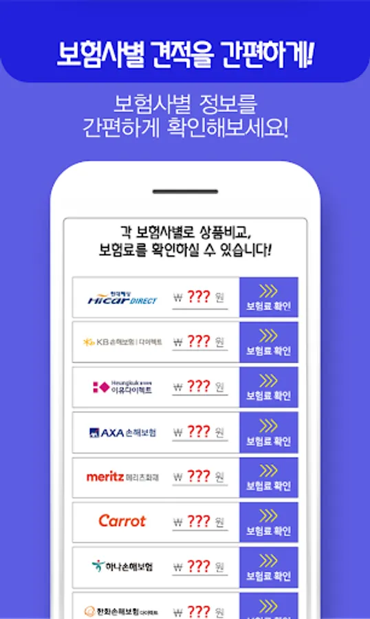 - Simultaneous real-time comparison of various insurance companies such as Hyundai Marine & Fire Insurance, Meritz Fire & Marine Insurance, and Hanwha General Insurance