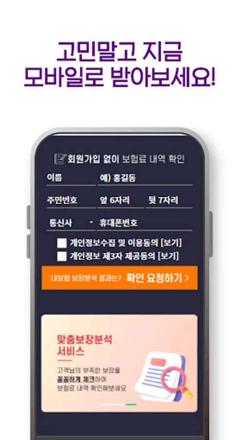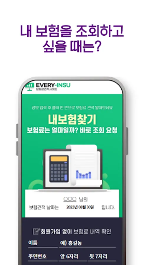 If you have a smartphone, you can find my insurance anytime, anywhere without time or place limitations. Download right now and use the various services provided by the app!