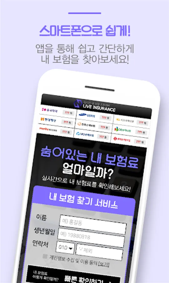 You can check the subscription history of all insurance products you have subscribed to at a glance by simply entering information without complicated authentication procedures. Find my hidden insurance and check all the hidden insurance money! Find my insurance hidden Find my insurance hidden My insurance inquiry app helps you to check my insurance easily and conveniently.