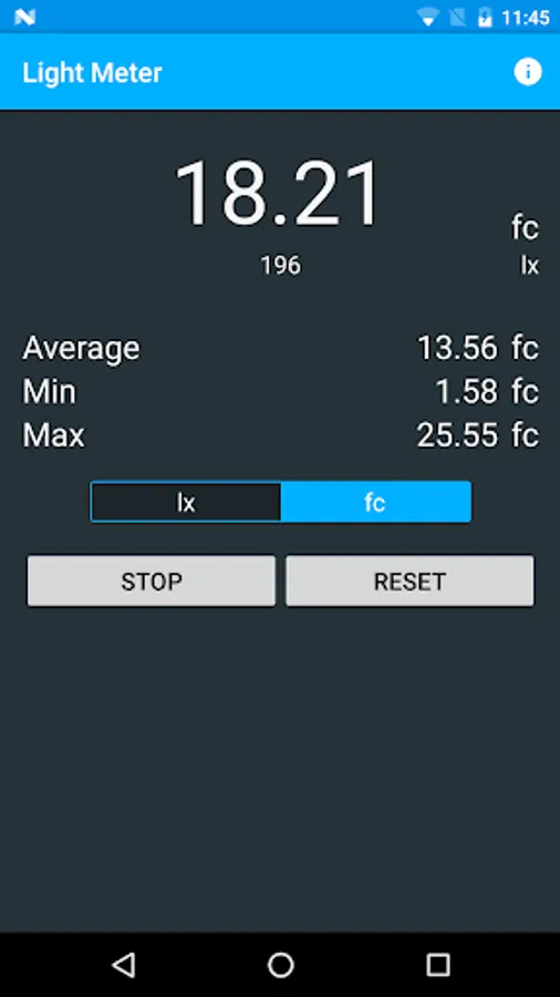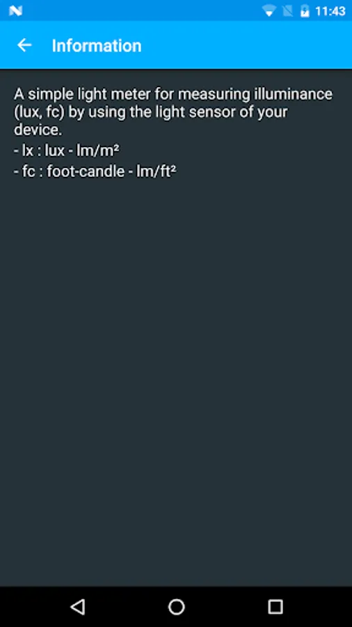 Light meter is a simple app for measuring illuminance (lux, fc) by using the light sensor of your device.