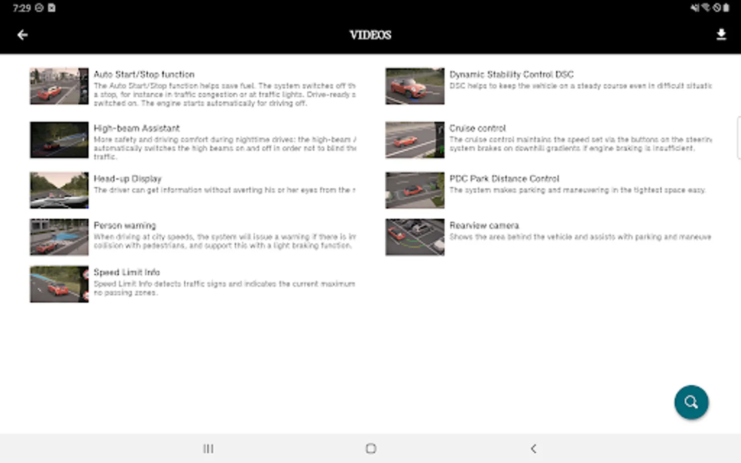 Depending on the vehicle, either all of the following content or a selection thereof will be available: