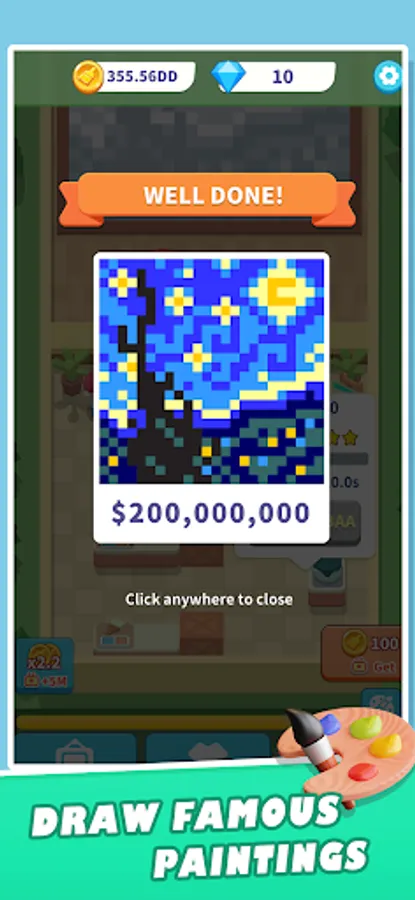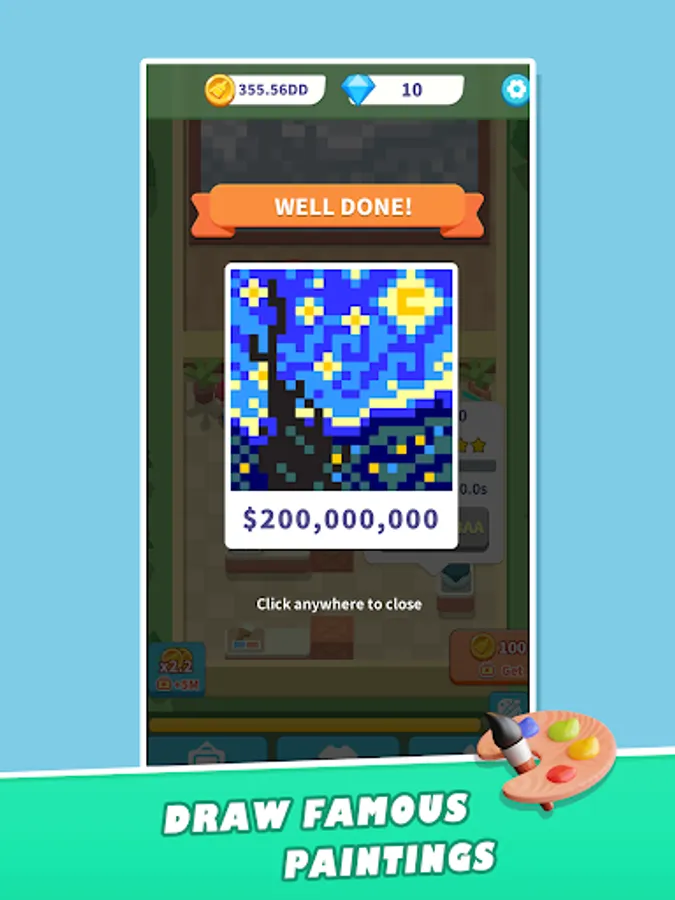 In 'Idle Art Tycoon - Pixel Art', you will explore limitless creative potential and build your own art kingdom. Join us now and embark on your painting adventure! Whether you are a passionate pixel art enthusiast or an idle game enthusiast seeking mental relaxation, this game will immerse you in the wonderful world of painting. May your studio become a source of artistic inspiration, a place where visitors linger. Download 'Idle Art Tycoon - Pixel Art' now and find balance between art and idleness, and become a legend!
