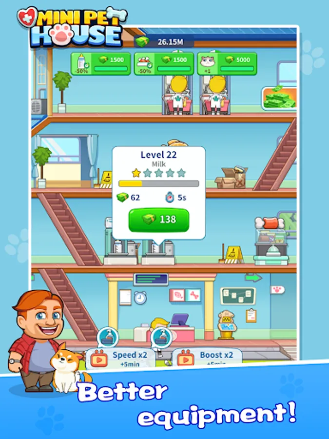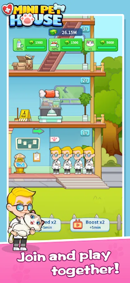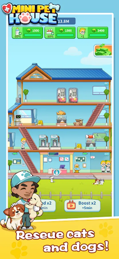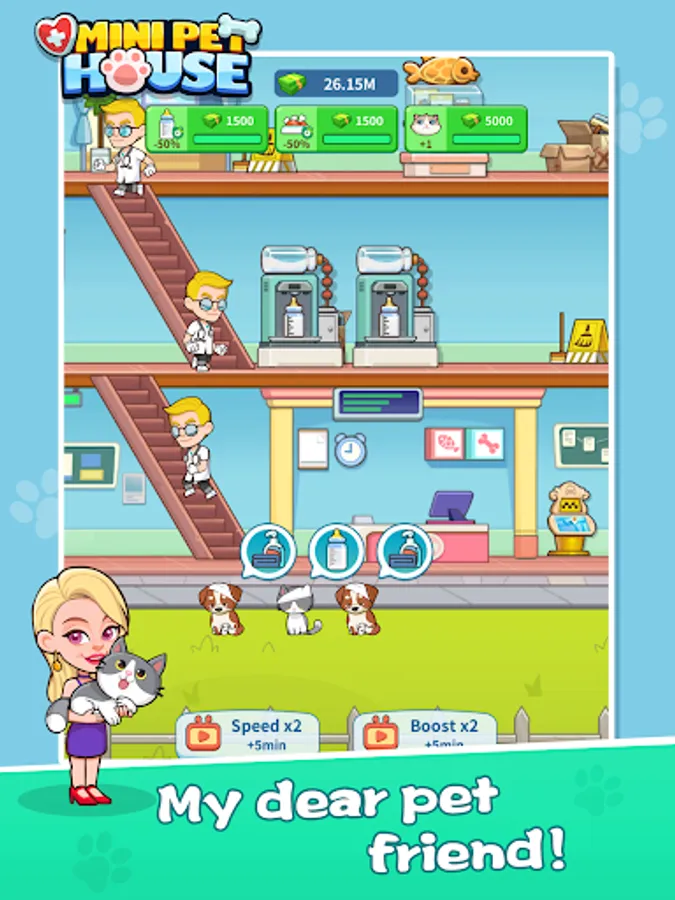 Welcome to Mini Pet House! As the newest veterinarian in town, it's your job to take care of all kinds of furry and feathered patients, from cute cats and dogs to adorable rabbits and birds. Treat and diagnose illnesses, perform surgeries, and nurse your animal friends back to health. Build up your hospital, hire staff, and upgrade your equipment to provide top-notch care and become the best pet hospital in the city.