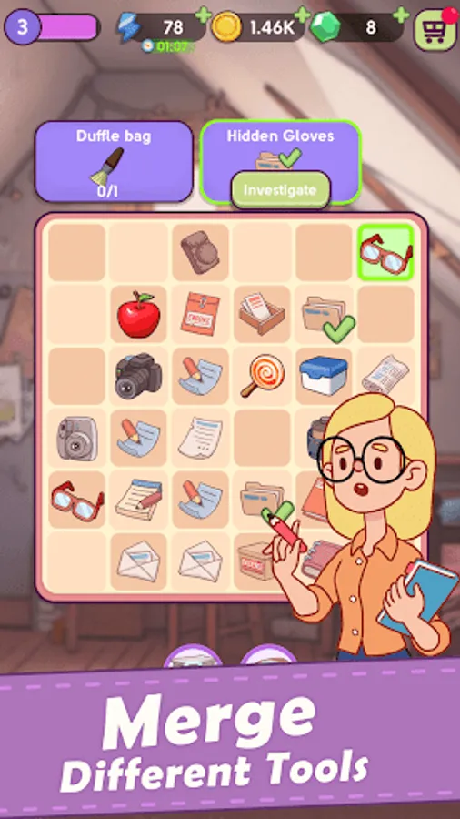 This game combines two gameplay mechanisms of synthesis and adventure. You need to unlock clues, collect evidence, and gradually advance the story by merging items, cracking puzzles, and other methods. At each crime scene, you need to patiently search the surrounding environment, find hidden objects, and piece together the truth behind the crime.