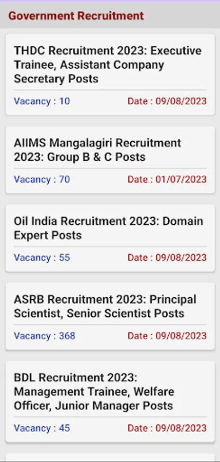 Indian Government jobs app list all type of government jobs notification. Employment News of central and state governments, Government Undertaking, Public sector, Railway, Defense, Police, Army and Bank jobs in India. All type of government job is listed in this app.