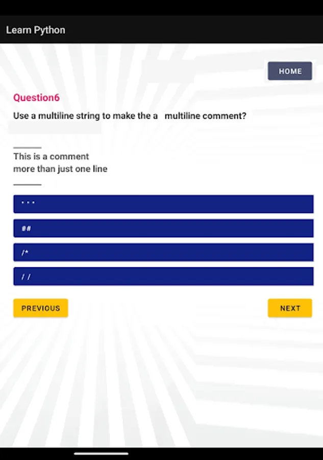 Get start your python skills with this amazing free app to learn Python Programming to become a Python programming expert by learning the python coding language. Who specialize in writing server-side web application logic. Their job is to use the Python programming language to develop, debug, and implement application projects. All coding learners or computer science students to learn python programming language whenever they want and wherever they want. Whether you are preparing for a python interview or need to become python programmer, you can find amazing content on this app. This Python Learning app has amazing content such as Python Programming Tutorials, Python Programming Lessons, Programs, Questions & Answers and all that you need to either learn Python programming basics or to become a Python programming expert.