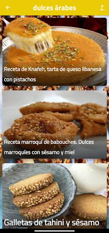 An arabic sweets app that includes the most famous arabic sweets from different countries in the world like Kunafa and Baklava sweets and many sweets that you will meet when you download the arabic sweets app.