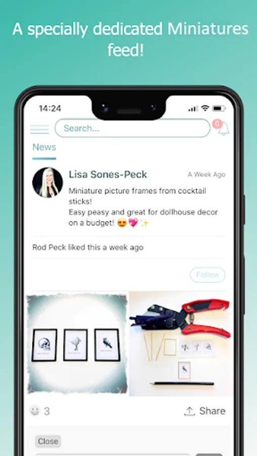 Whether you are into Dollhouses, Railway scale, polymer clay figures and food, or laser cut furniture, this App brings collectors, artisans and hobbyists together in a unique social network of fellow miniaturists including tutorials and inspiring articles, the ability to keep in touch with your favourite miniature experts and brands, and a marketplace solely dedicated to the miniature world!