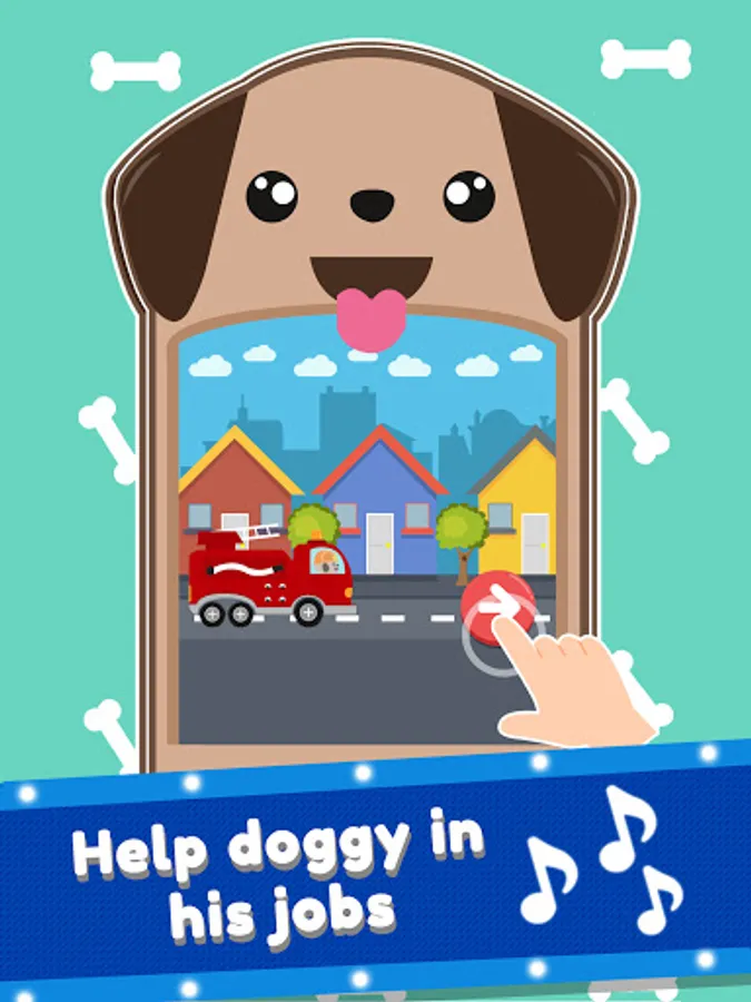 Enter the kids game of vehicles with puppy and learn many sounds like a fire truck, an ambulance or even a police car among many more.