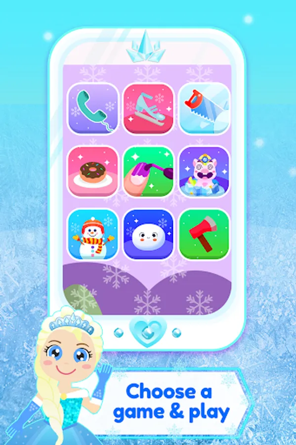 This amazing phone simulator with awesome mini games to be entertained. It allows kids to play in a magical world of ice as they identify colors, choose shapes to encourage their creativity and participate in figuring out how to play each game.