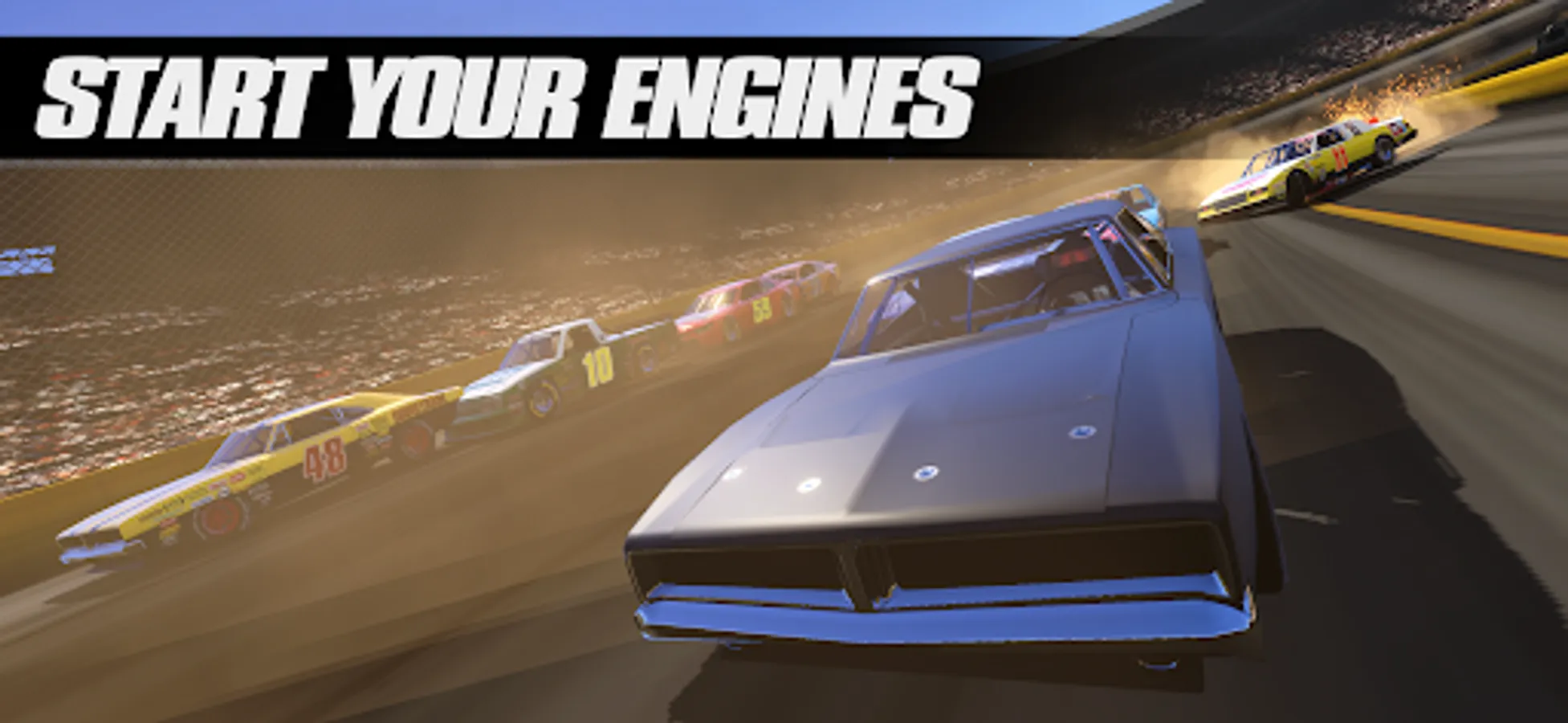 Drivers start your engines! Professional oval track racing that explodes with stock car racing action!