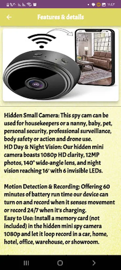 • Download the mini camera HD 1080P guide Detector app now and use it today!