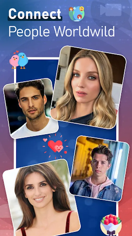 • Meet some new people and do live video calls & chat randomly with pretty girls and handsome guys face-to-face in real-time video calls.