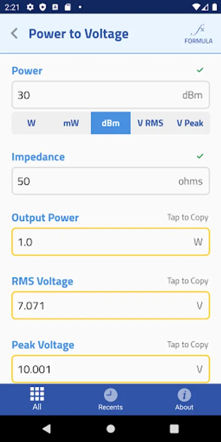The Mini-Circuits RF / Microwave Calculator performs 31 calculations commonly used by RF and microwave system designers at the design desk, on the test bench and in the field. Some popular calculations include the effect of VSWR or return loss on transmitted power, cascaded gain and noise figure for up to five amplifier stages, Ohm's law circuit analysis, power-to-voltage conversion and more.