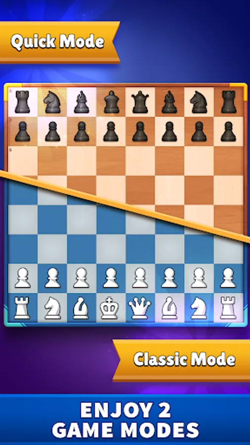 Try the two game modes — play the Classic Chess board game mode for a relaxed match or the Quick Chess board game mode for a fast-paced match. Choose from several arenas that offer different match prizes in this chess online game.