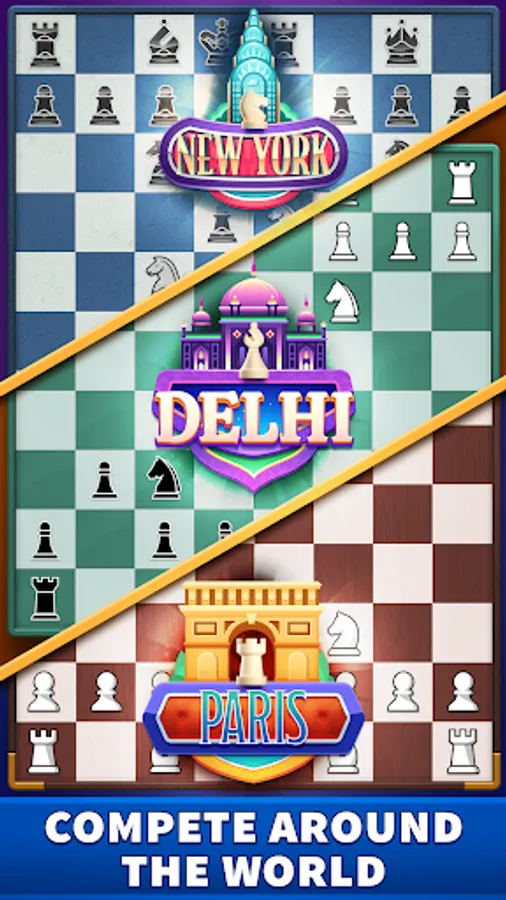 Unlock and collect beautiful chess sets by playing the game. Get free rewards every day! Compete with other players on the Leaderboards. Climb them up to the top and win big prizes. Everyone can join this Real Chess adventure and learn new tactics by playing live with real opponents!