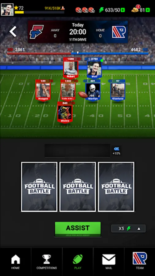Attack, defend and score – place cards and gain valuable skills in the slots, attack your rivals and steal their experience. Can you score a touchdown?