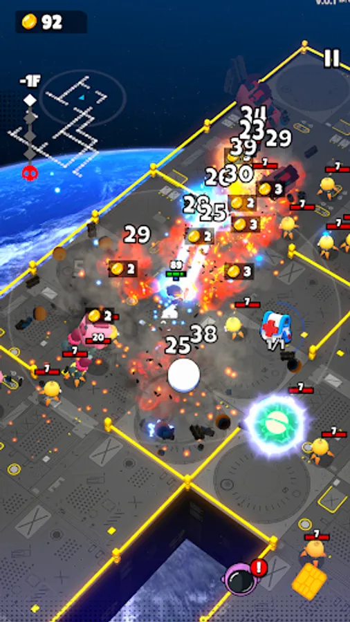 Armed only with your trusty laser gun and your wits and begin your descent down the space elevator! As you fight your way down, you discover that something sinister is behind the attack, and it's up to you to stop it!