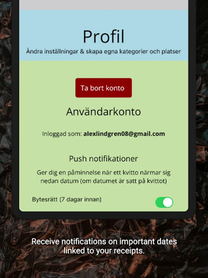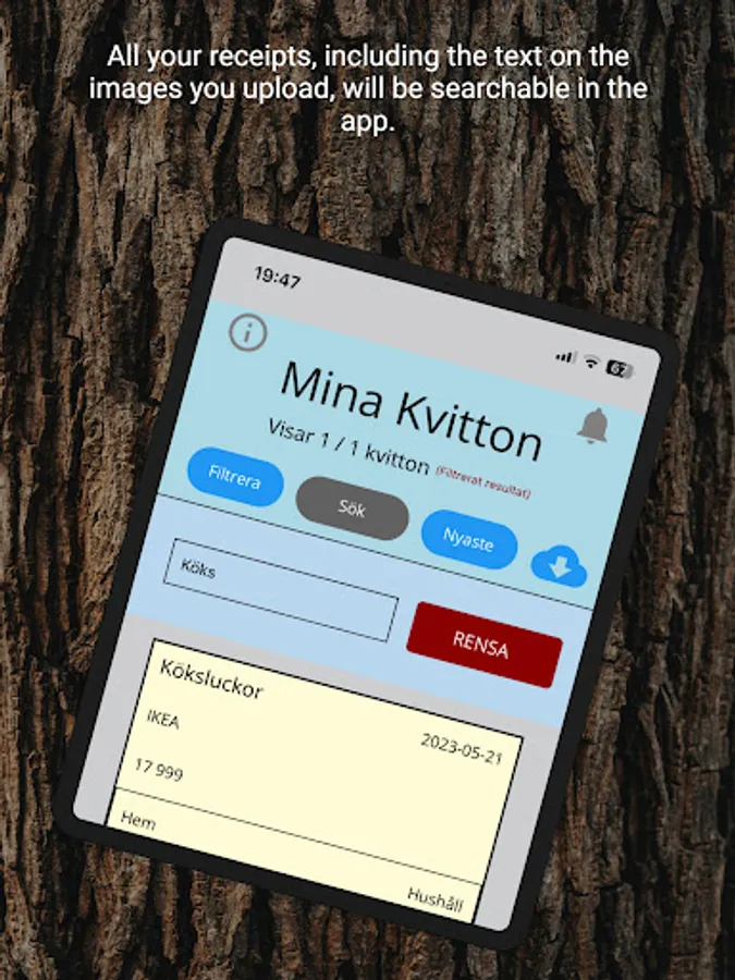 Keep track of your receipts with our mobile app, "My Receipts"! With this revolutionary app, you can take pictures of your physical receipts, turning your paper chaos into a digital and organized collection. Use our AI technology to automatically read the most important information on your receipts and categorize them in an instant.