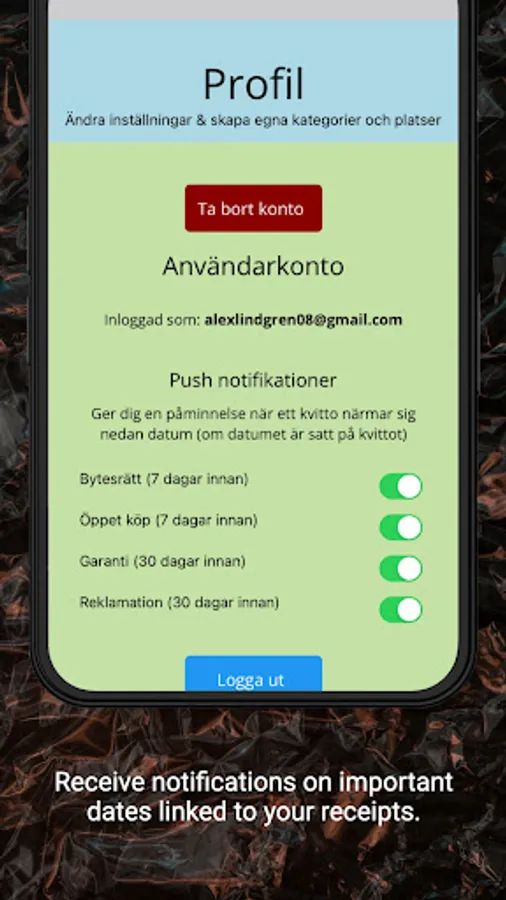 "My Receipts" is more than just a receipt app. It's your personal assistant reminding you when the open purchase or warranty period for your purchases is approaching. It's perfect for homeowners, large buyers, or anyone who wants to keep their receipts in order.