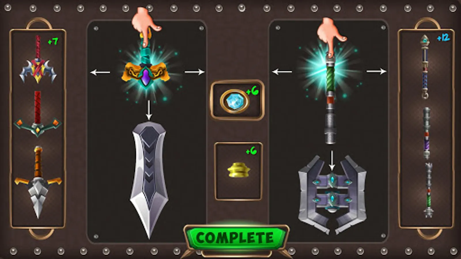 - Weapon decoration with different handles and gems.