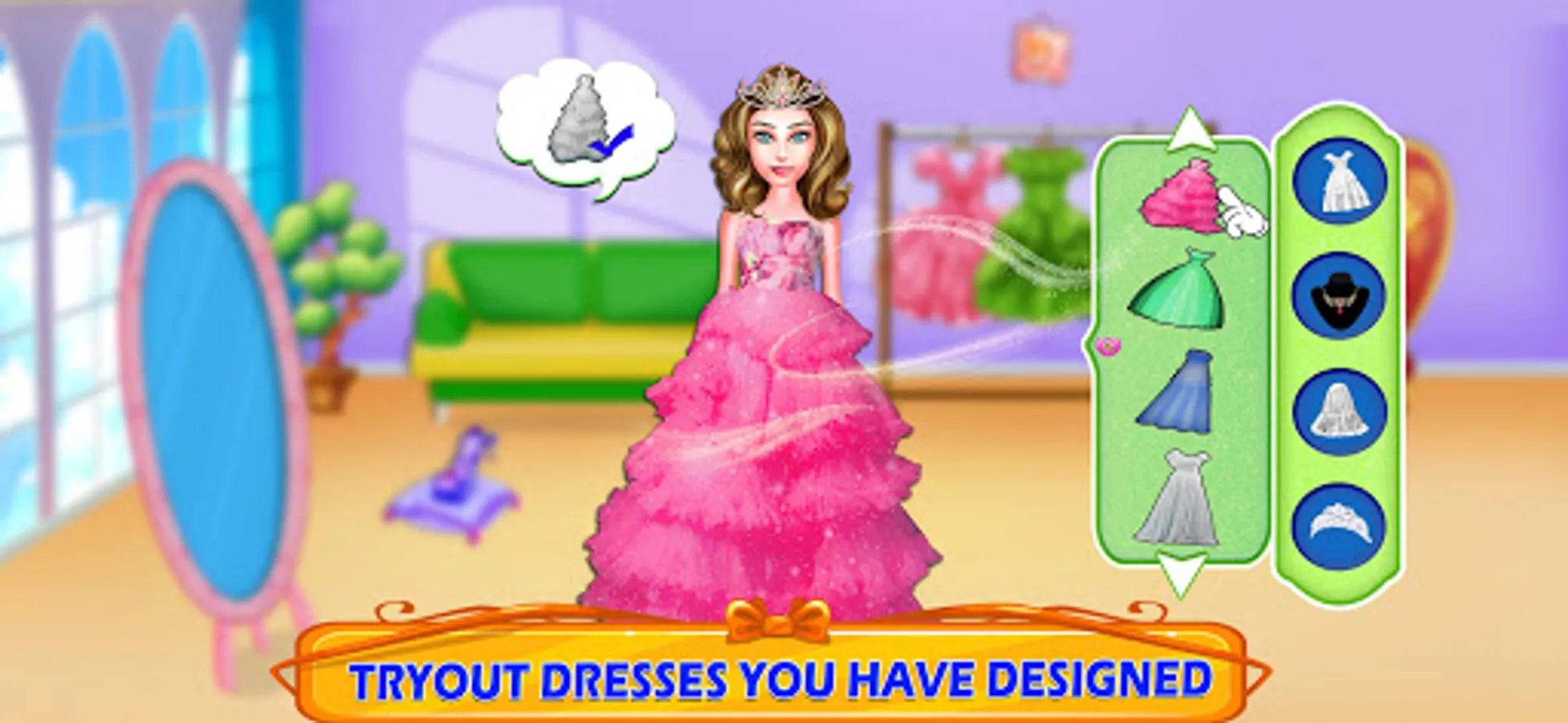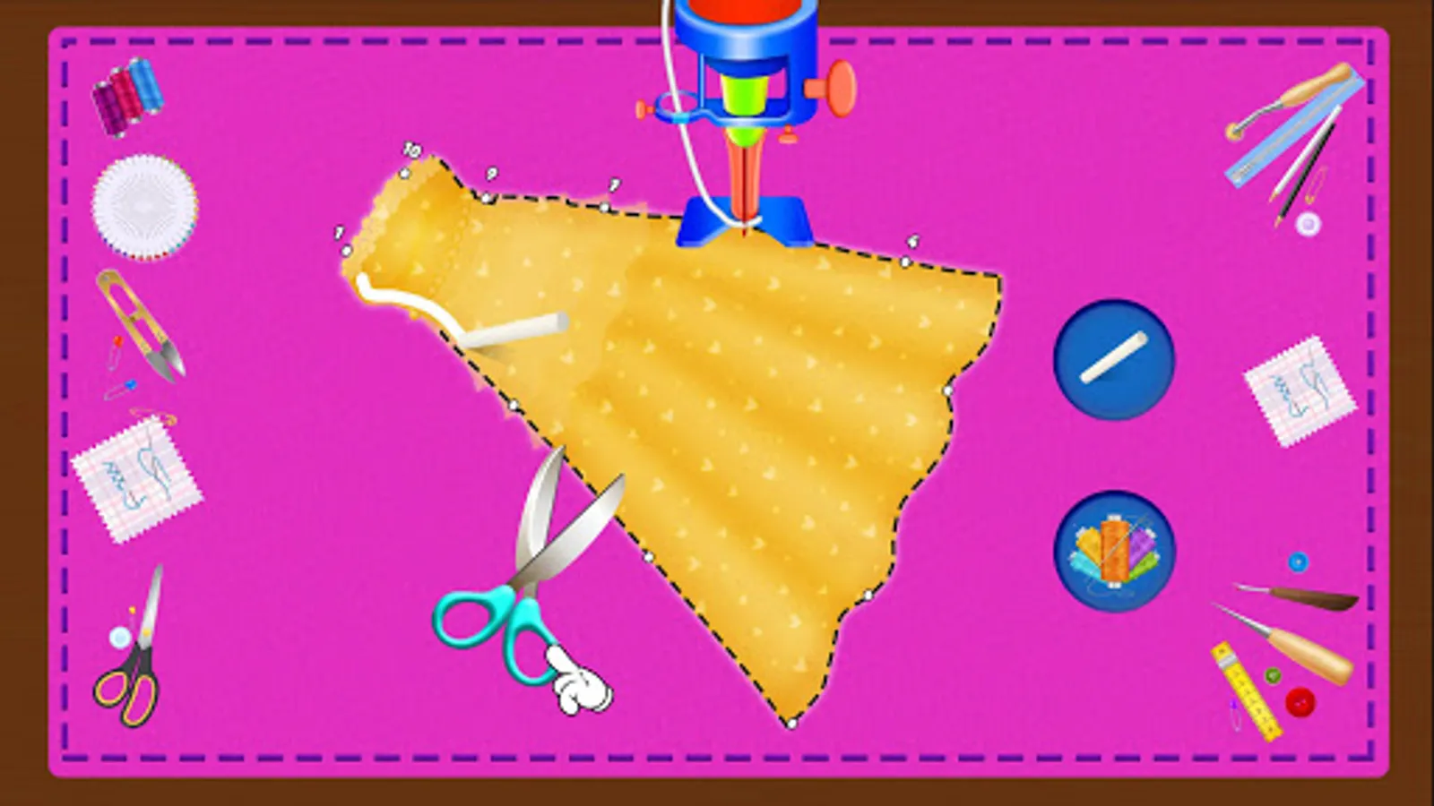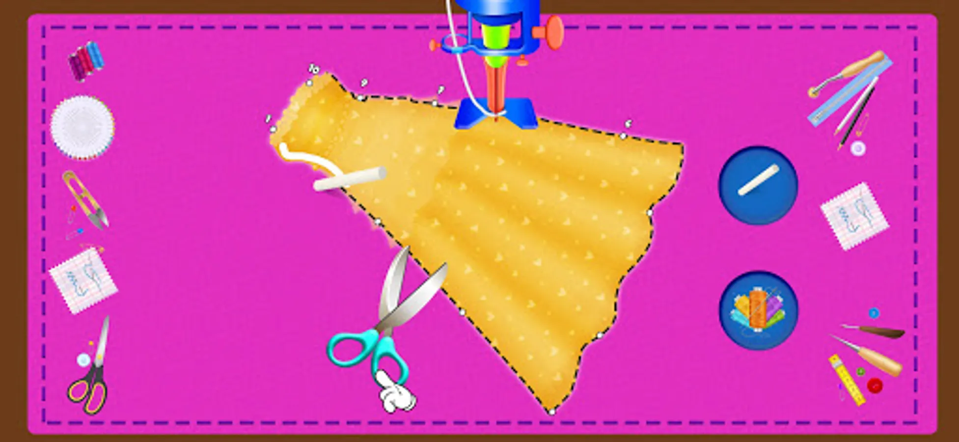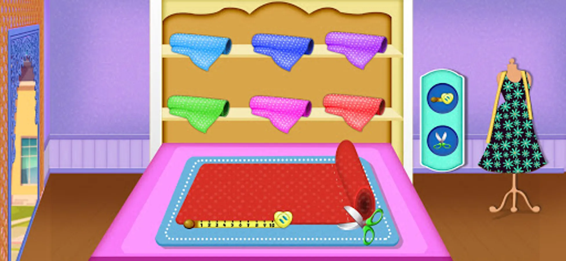 Choose the designer dresses designs from popular boutique shop and cut the cloth after marking the design on it. Master your tailoring skills by cutting clothes right on marking with a scissor. After cutting the design, little tailor use sewing machine to sew the clothes in the boutique shop. Little boys and girls now be the fashion designer to decorate royal princess bridal dresses with laces, jewelry, stones and other accessories. After completing the wedding dress maker, let’s have a royal dress up in the trial room of your tailor shop & bridal dress fashion salon