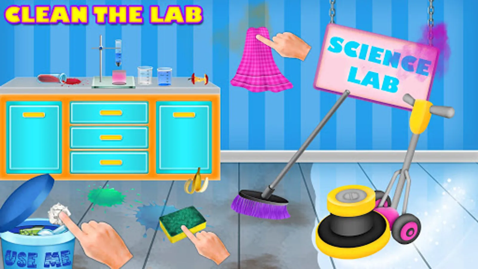 Crazy kids! Its time to welcome your new teacher to your high school. From cleaning up school labs, cooking delicious lunch food in canteen, repairing playing items to performing multiple science tricks & experiments like making colorful snow, laughing gas & learning acid base reaction. Find hidden objects in your class room and place the items on their respective places to complete levels making class rooms neat & clean. Play in the playground outside with football & basketball after making repairs to the broken goal post & basket. Score goals to take the victory in High School Teacher Craze. Show her some respect with your learning & passing the exams with flying colors. Perform multiple activities from drawing animal images to completing math equations in High School Teacher Craze. One of the best educational simulator games for girls & boys with plenty of adventure & fun which will keep your children hooked to it.