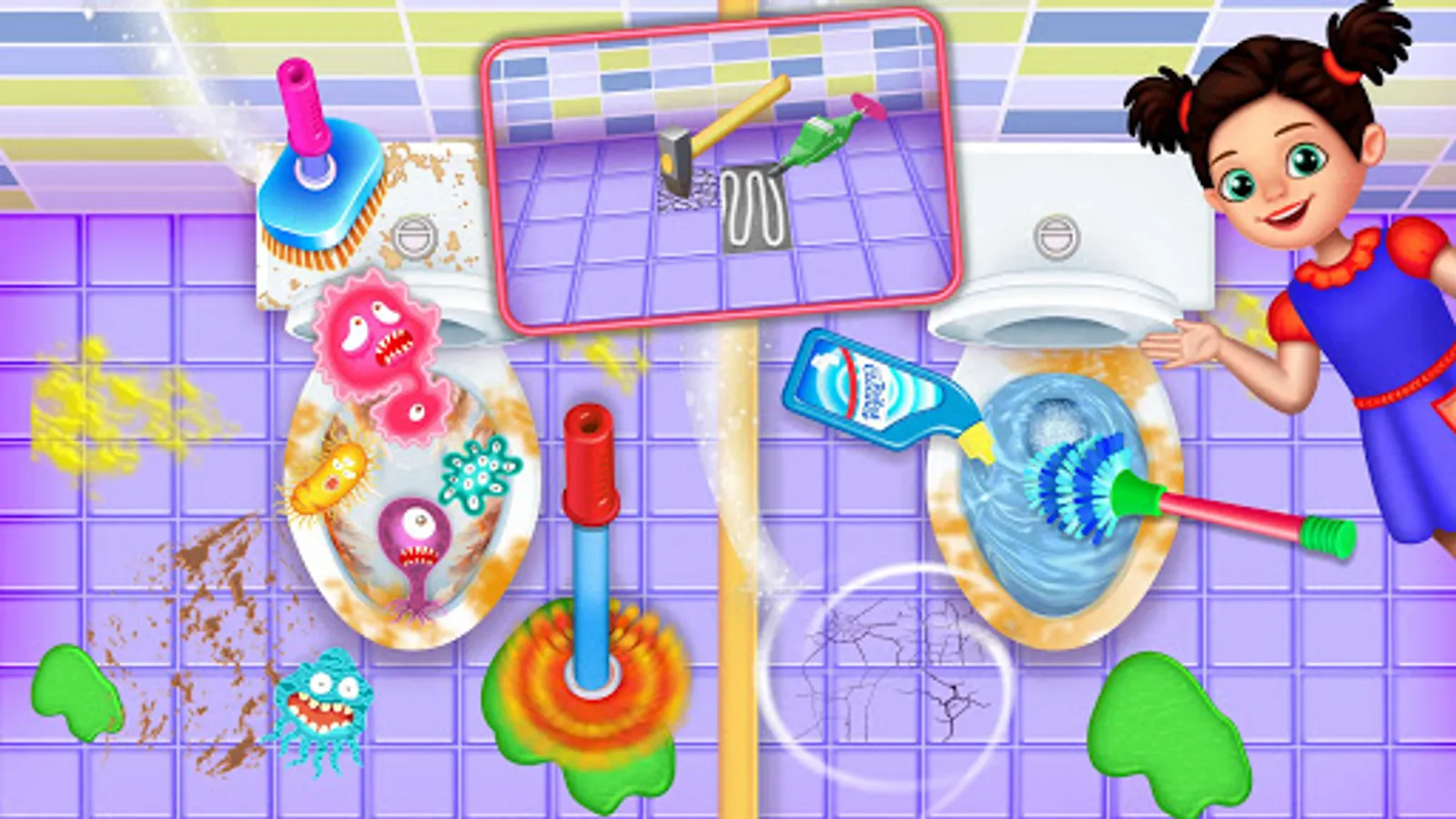 Messy high school cleaning is the best cleanup game for girls. Little cleaner and housekeeper! Use your housekeeping skills to clean up & repair the messy classrooms, playground, cafeteria and school bus. Along with cleaner & fix it activities there are many mini games for entertaining time. After the passing out day party the whole school is messy and needs proper cleaning. Little girls! why not you take the responsibility to makeover the high school like you do in your dream home. High school girls the school is the second house for students so let’s design, decor and clean it with a lot of creative activities.