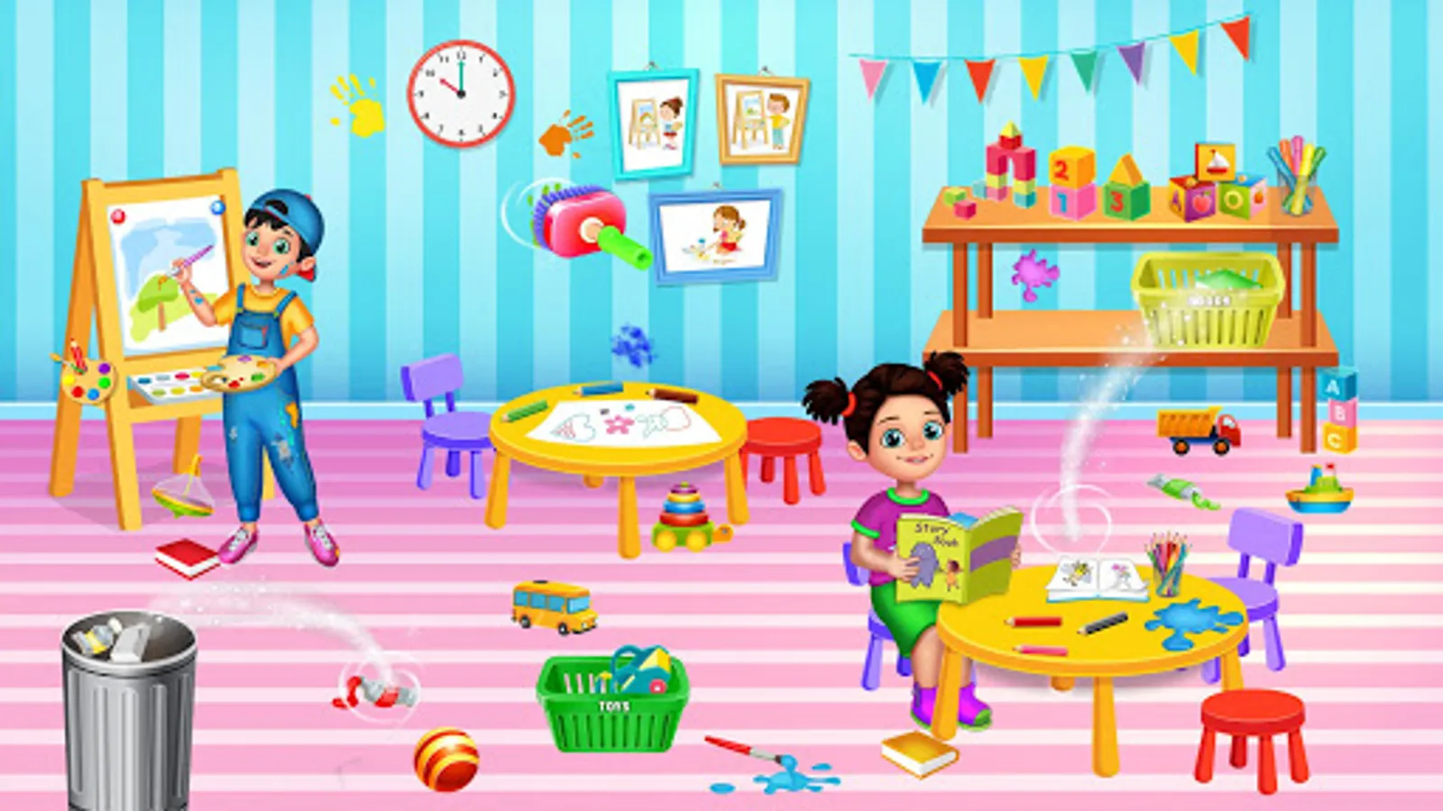 Classroom’s stuff is messed up and scattered. Rearrange the classroom furniture, dump the trash, clean the mud spots and place the objects in the right spot. Cleanup the classrooms with best cleaner and washing skills. Carpenter! Repair the broken furniture like tables and chair. Enter the drawing class room where all the art painting and coloring books work done. Along with cleaning, washing and designing the room you can also color different character in the drawing book. Use all the cleaning and washing games tools like vacuum cleaner, mop, broom, brush and sponge.