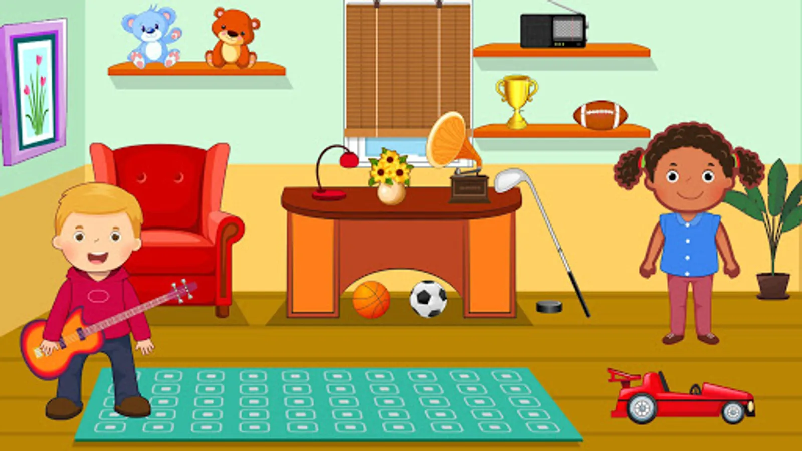 Let’s honor them and spend quality time with them in their hometown. Think of this pretend game as a fully interactive dollhouse in which you can touch and interact with almost every object you see. With fun characters and highly detailed locations, explore the living room with a gorgeous, winding staircase, grand piano, and kitchenette! Play with video games, relax near the aquarium tank full of exotic fish and relax on the couch!