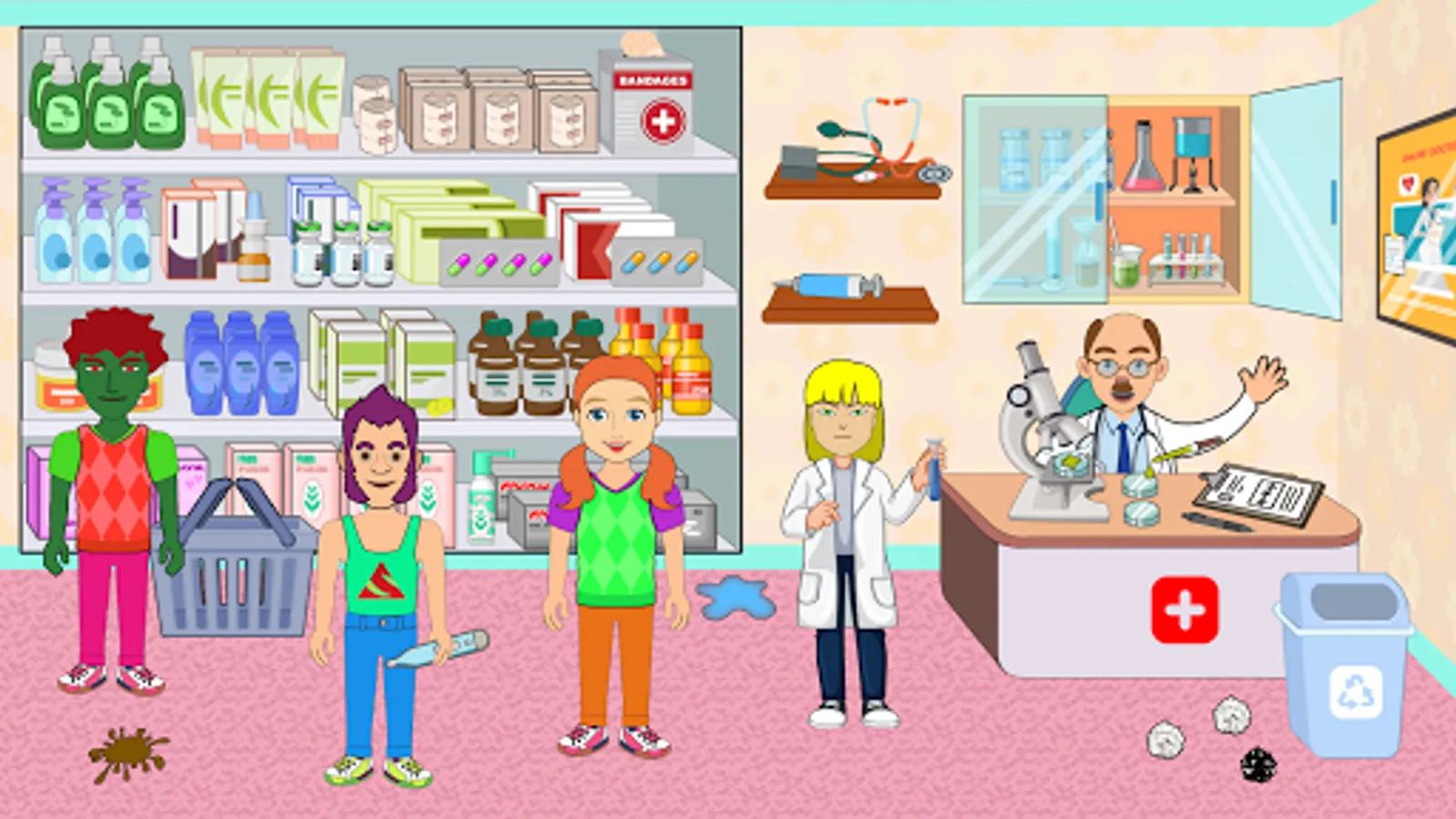 Pretend play in hospital is an imaginative open ended and role play game where you can discover and enjoy different roles like be a nurse, patient, doctor or other clinic staff members. In this virtual hospital you can manage and arrange a lot stuff, shop snacks, medicine and dress up any character as doctor or patient. Make the best story by self-defining game play in my clinic life. Explore all hospital rooms, medical labs and departments to enjoy creative and entertaining activities. You will enjoy playing all the scenes of pretend games because you can define their story by playing it b your life rules.