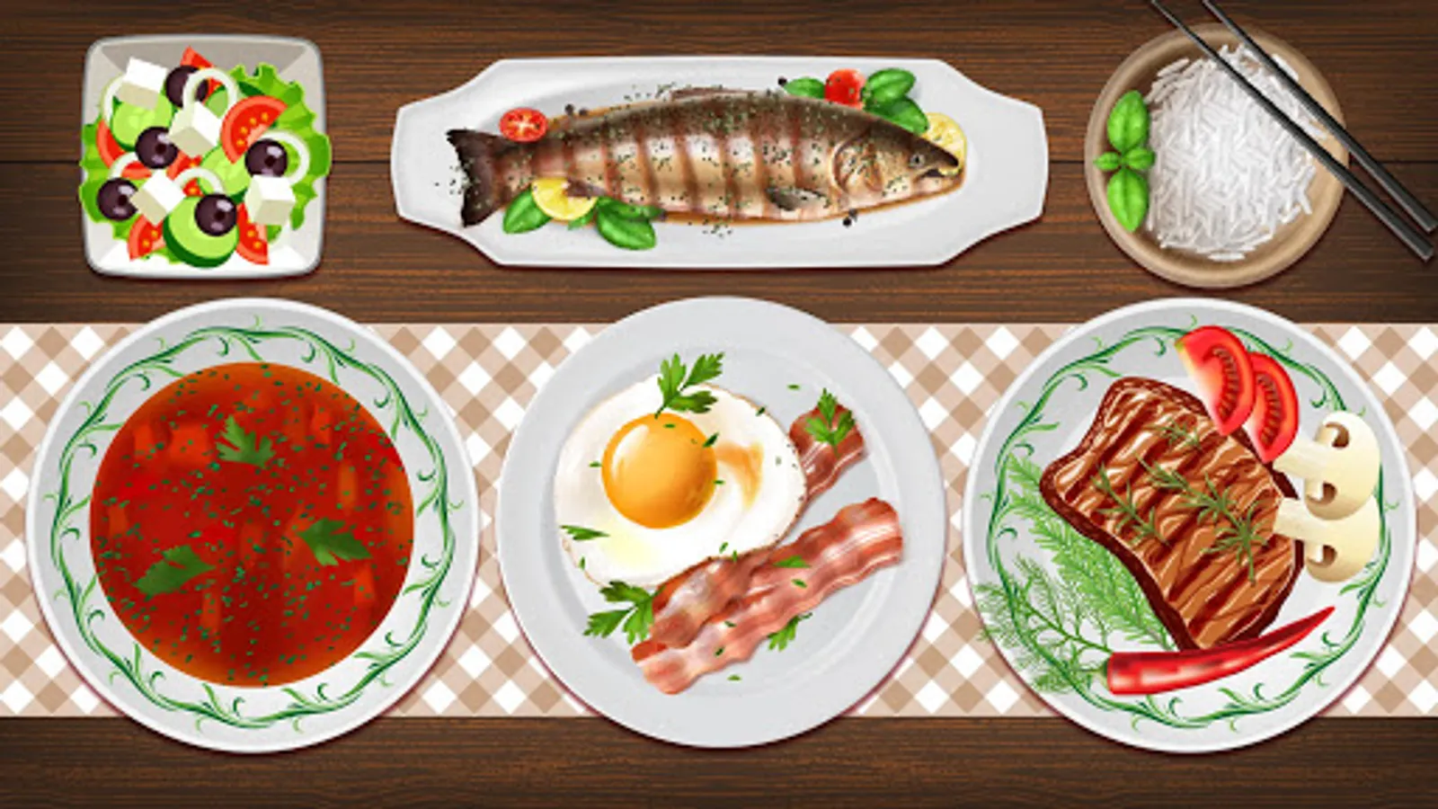Welcome to world cookbook chef recipes game. A unique food maker game, where you can master your cooking skills by making and baking desserts & exotic dishes from multiple countries located in different continents and sub-continents. Put on your chef apron and master delicious recipes in the kitchen. Learn to use best cooking gear to experiment culinary skills like real gourmet expert. Cook, fry, grill, bake and stir bundles of food dishes and recipes to reach cuisine glory. Making and baking food and desserts is real challenge with this time management and task based unique baker and maker games. This virtual cooking simulator is the best change for kitchen games lovers to unleash their inner frenzy for food making.