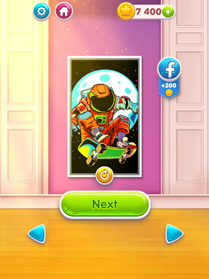 Create your own gallery with hundreds of unique pieces of art like in a world-class museum. Earn coins and buy picture frames, creating a unique exhibition! But first try to solve the puzzles. Ready? Go!