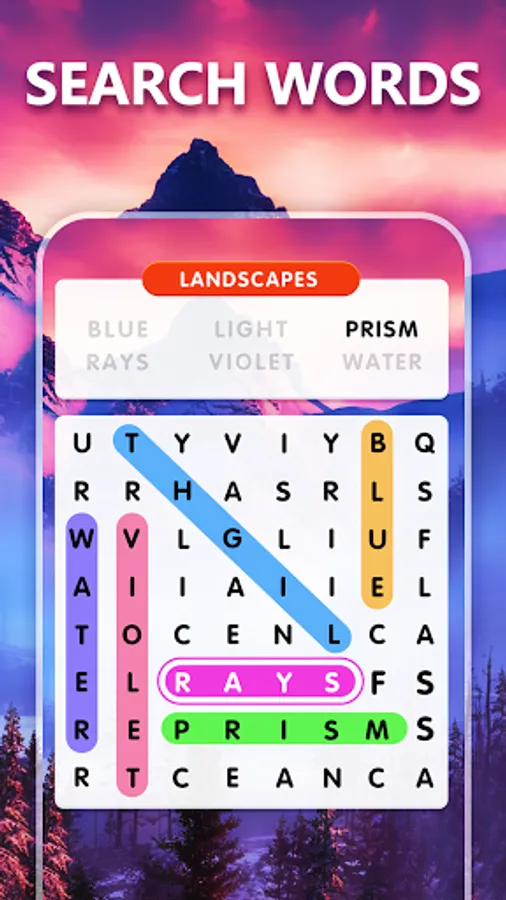 Welcome to Word Search Pic! It's a word search game that makes you addicted. Find the target word on the letter board. A fantastic image will show up after you finish it.