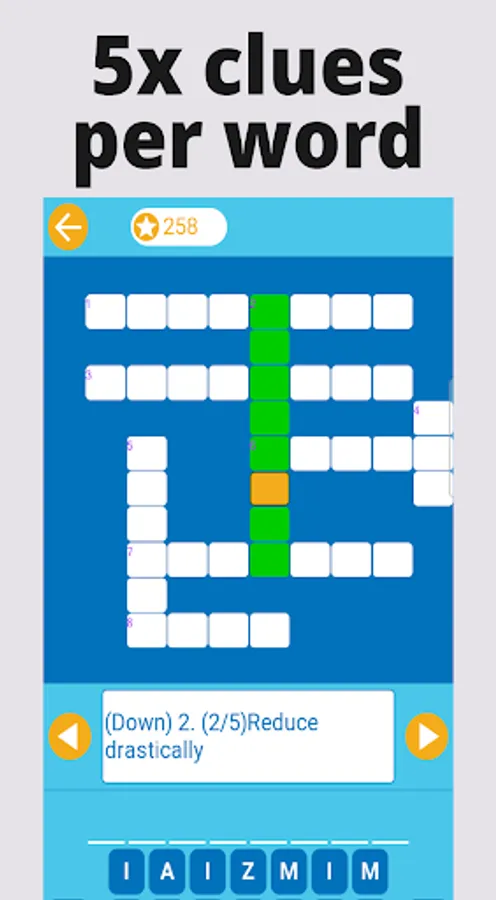 Easy Crossword with More Clues is a crossword puzzle game designed for beginners, or English as second language (ESL) learner. Compared with classic crosswords, one innovation is it has 5x clues for each word which makes the crosswords more friendly to the beginners. You can see more clues by touching the clue description label.