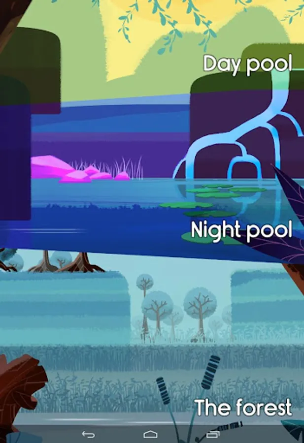 Lightning bugs field. They will have three different scenaries, day pool, night pool and the forest. This game is useful for visual and auditive skills. They will have to clic on the bees to make them explode.