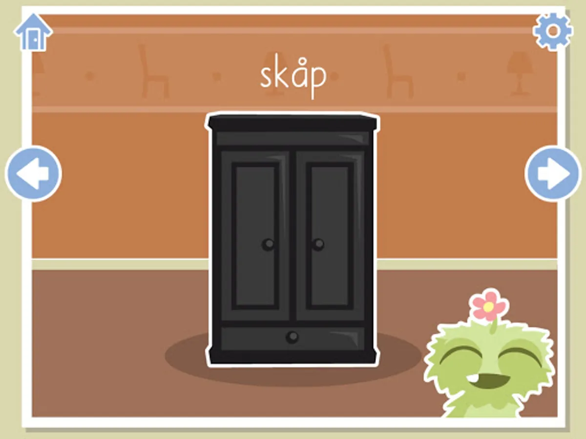 Minilobes need help learning new words! Minilobes has not yet learned so many words and needs help telling what the pictures represent. When you press the pictures, you are able to recognize, understand and pronounce different words divided into eight categories; animals, vehicles, clothing, toys, food, music, furniture and tools.
