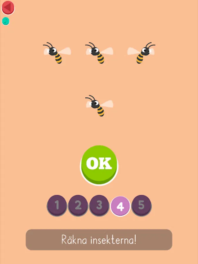 A narrator's voice guides and gives feedback in a playful way to learn to count to 20 in steps, practice speech comprehension and introductory mathematical concepts.