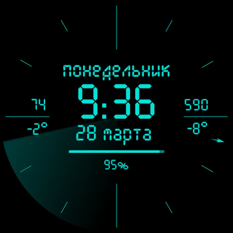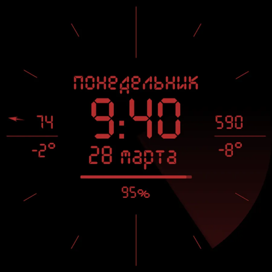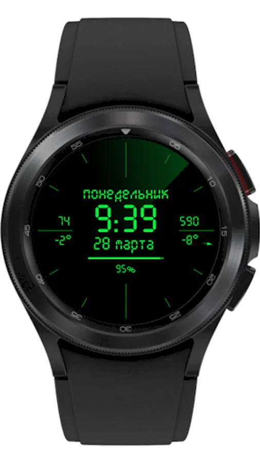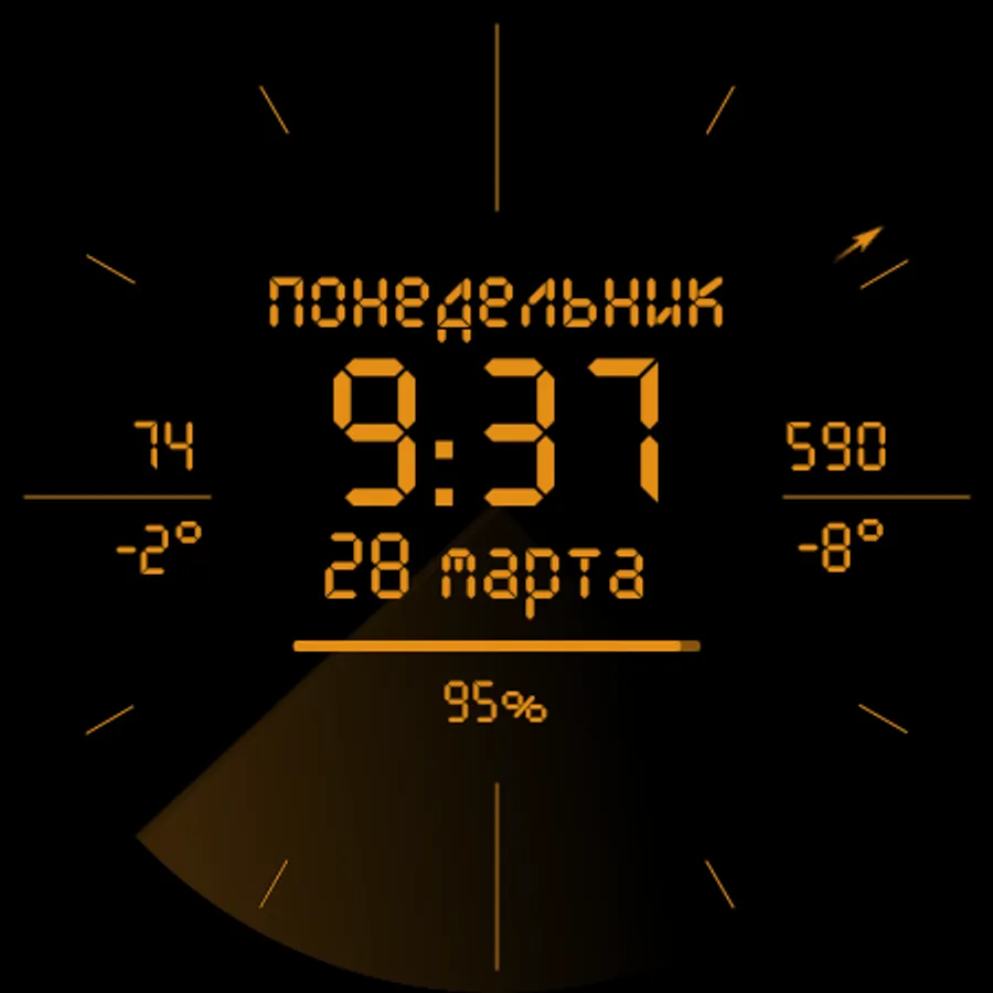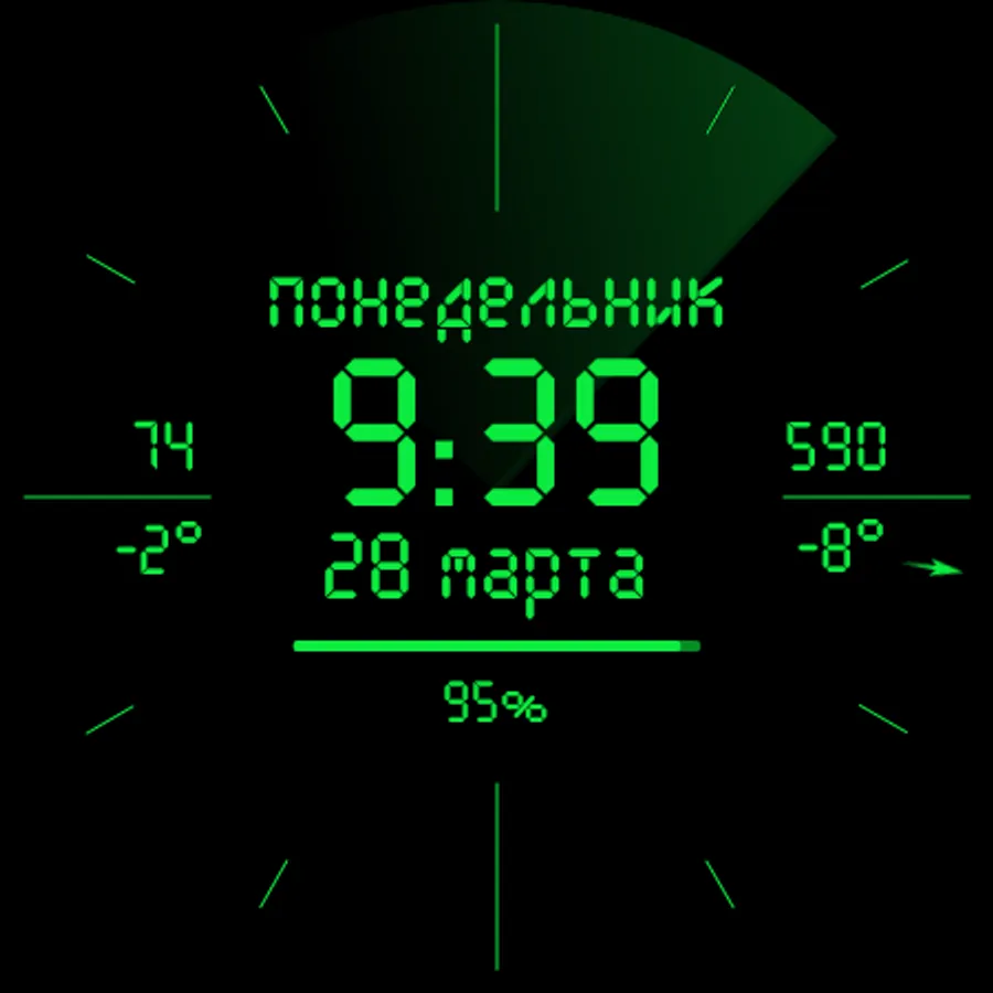 Attention! If you do not install the watch face or writes that it is not supported, then try installing it not through the application, but through the Internet version of the play market through any browser. The dial has a radar-type animation. Pulse measurement when you click on the add-on on the left (give permission when you first install) There are also three customizable functions.