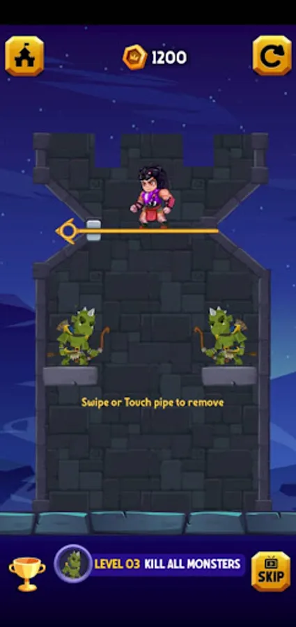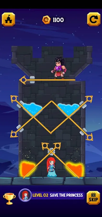 Pull the pin to make a safe path to the princess. Become a hero of you Kingdom. Over 100 difficult levels are waiting for you. Pull the pin to kill the goblins, to save the princess, to get the treasure chest etc. Don’t touch the Lava otherwise you will die.