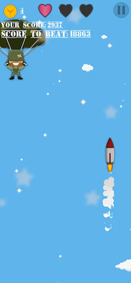 Take control of Paratrooper and fall endlessly through they sky while evading a variety of airborne missiles.
