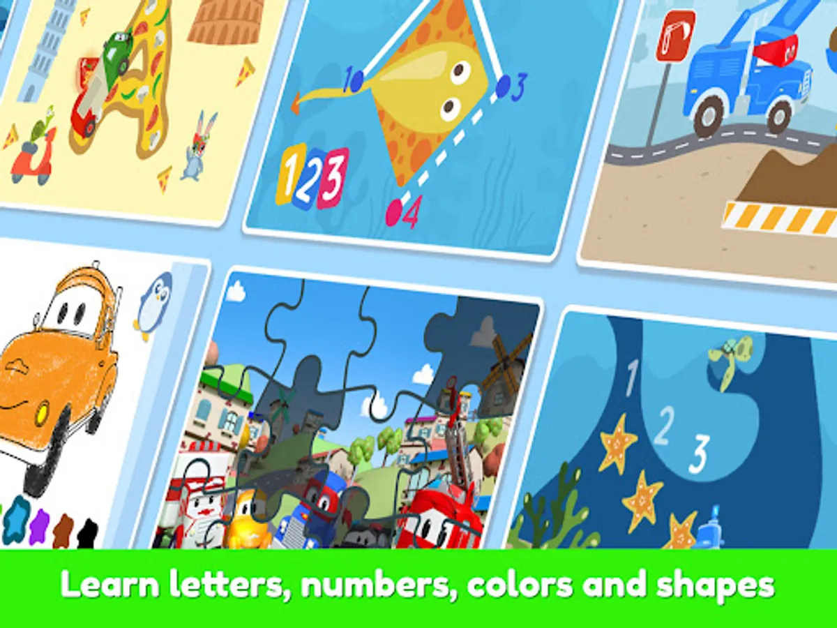 Enjoy the very best of Car City games and educational activities in one single fun app!