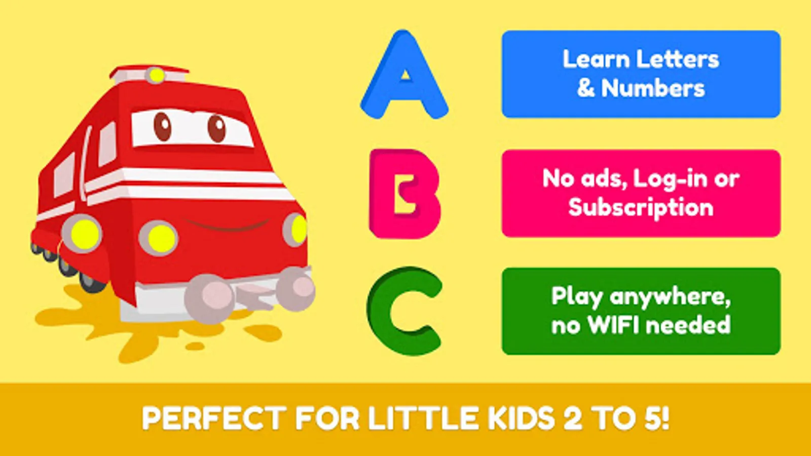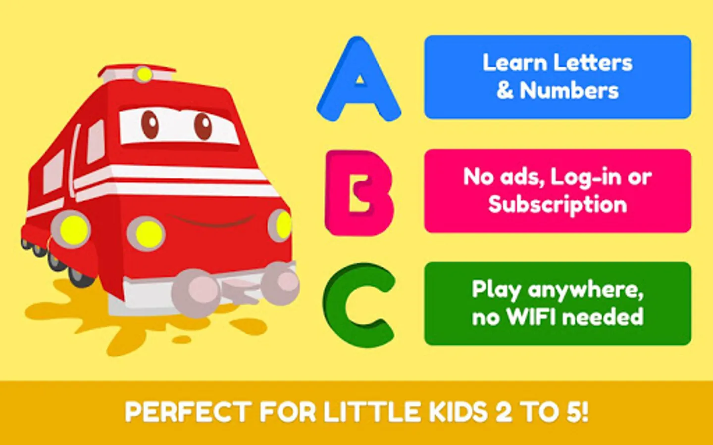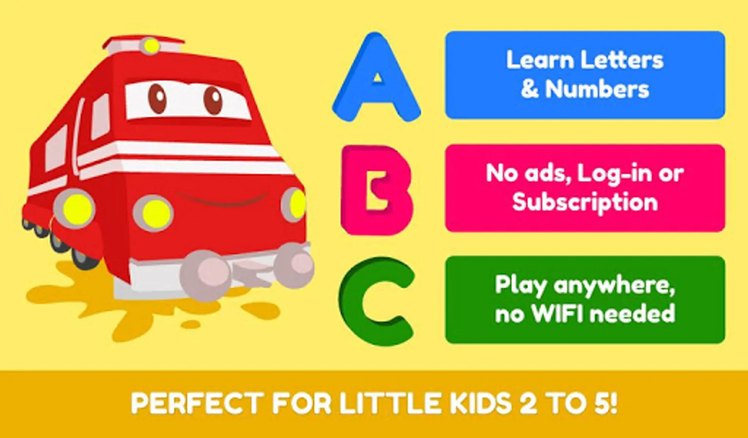 Troy the Letters & Numbers Train is the perfect app to teach preschool kids aged 2 to 5 letters and numbers.