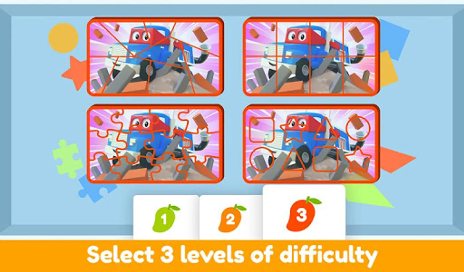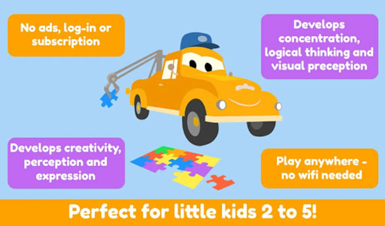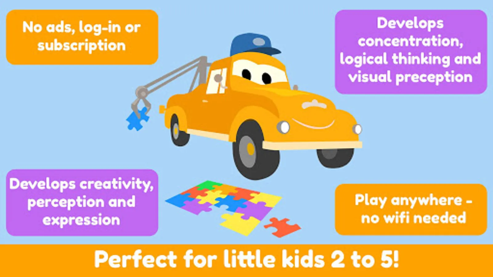 Car City Puzzles is the perfect app for kids aged 2 to 5 who like brain teasers!
